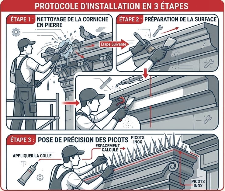 Installation de picots Anti-Pigeons à Versailles et en Île-de-France